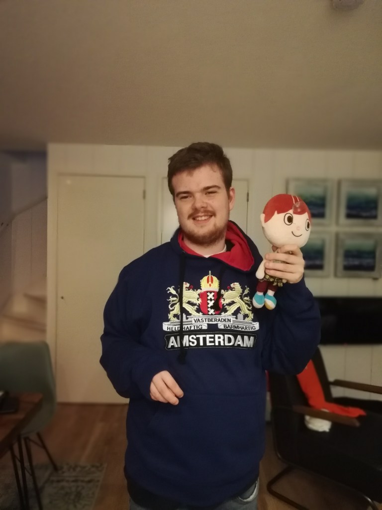 Swan en Joshua met een Duits vlaggetje en een spelletje (Halli Galli) die ik daar gekocht heb! Lijkt bijna op een schilderij of niet?Ik aan mijn Japanse pannenkoekEen carpaccio die er nogal uniek uitzag! Hier moest ik gewoon een foto van nemen!Ik op de Zaanse SchansNog een foto van mij op de Zaanse SchansEen foto van de Zaanse Schans!Ik bij de allereerste Albert Heijn ooit!Verfmolen de Kat! Waar ze nog steeds verfpigmenten maken! (Geen idee waarom dat ding zo heet)Ik in verfmolen de Kat, met mijn vader ben ik hier oude pigmenten aan het bestuderen!Ik bij een oudewetse reclamezuilIk aan een pizza Calzone bij een Italiaans restaurantje in Alkmaar!Ik in mijn Amsterdam trui die ik bij de Zaanse Schans heb gekocht met mijn knuffel Kane (want die komt uit Amsterdam)En last but not least: Ik met mijn knuffel Luc Nefario bij Het Huis met de Kogel in Alkmaar! (Wat Luc Nefario’s woonplaats is in de gecancelde serie de Wereld van Aukje! van dezelfde makers als Likybincity)