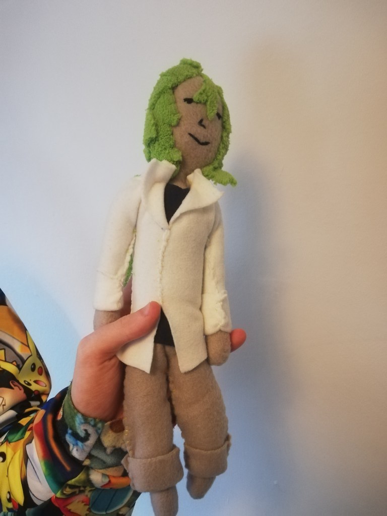 Het is een karakter uit Pokémon. Hij heet Natural Harmonia Gropius en hij kan dus met Pokémonwezens praten. Ja, dat zei ik, met Pokémonwezens praten. Ook heeft hij in mijn Simswereld een vriend genaamd Cheren Tanaka met wie hij een relatie heeft! Je hoort het goed! Deze knuffel valt dus – in de Sims tenminste- op mannen! Niet dat ik dat erg vind! Iedereen mag lekker doen waar je zin in hebt hoor! Wees lekker jezelf! Iedereen is uniek!