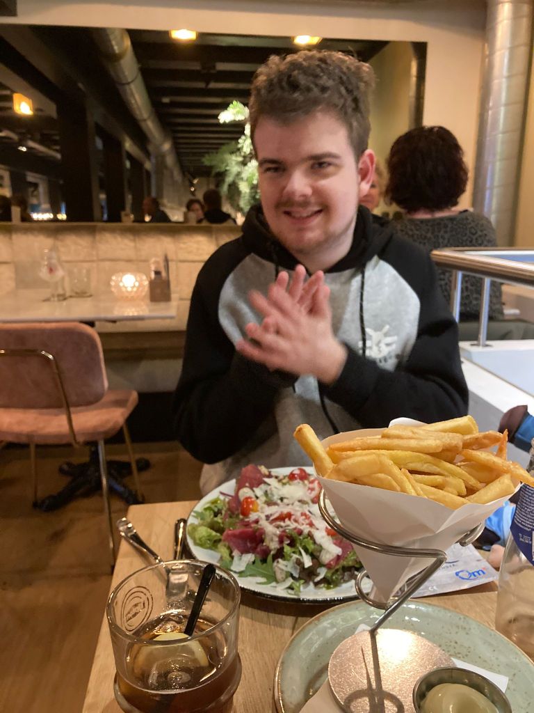 Daarna zochten we naar een lekker eettentje en toen kwam mijn tante op het idee om bij het Vlaams Arsenaal (Ofwel Arsenaal 1824) te gaan eten, dat vond ik best een goed idee, want de friet is daar goddelijk. De beste friet (of is het patat?) van Nijmegen IMHO. Ja friet kreeg ik daar zeker, maar het gerecht wat ik bij de friet had besteld was een carpacciosalade. Want als ik carpaccio op de menukaart zie staan, dan kies ik dat. Want ik ga voor carpaccio. Alie heeft daar een hele mooie foto van gemaakt.