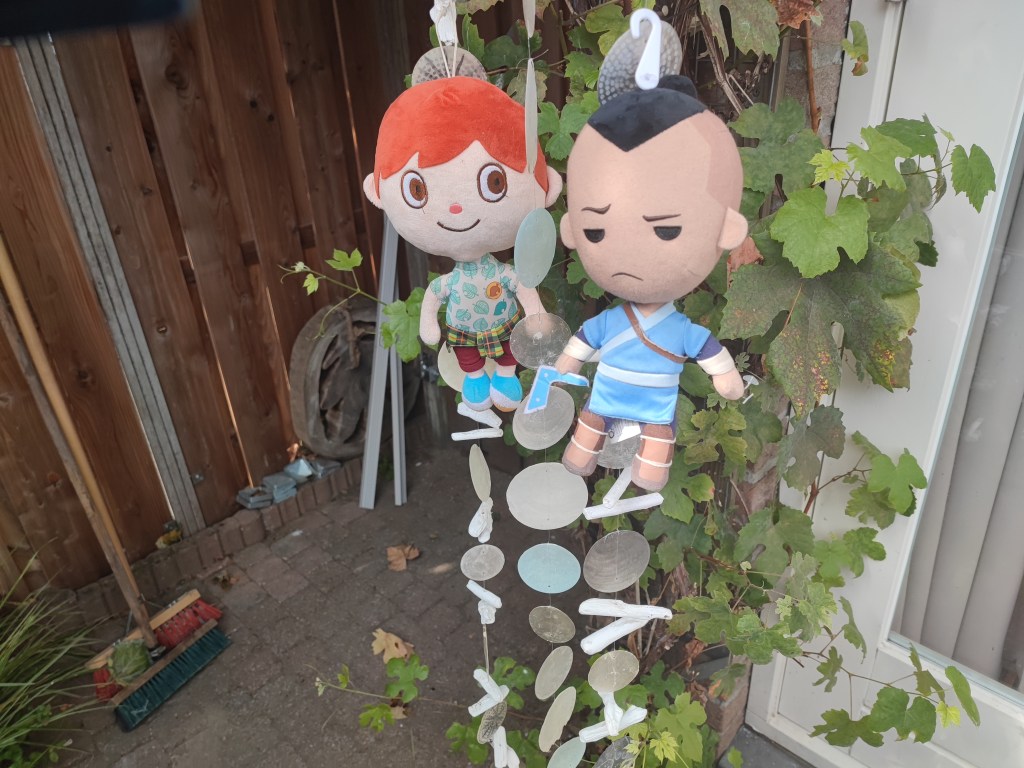 P.S. Ik ben vandaag maar in de tuin gaan zitten computeren en Simsen, toen zag ik dus net twee dronken merels en hoorde ik het liedje Ik ben Kachel en het liedje Trompetisto in mijn hoofd!