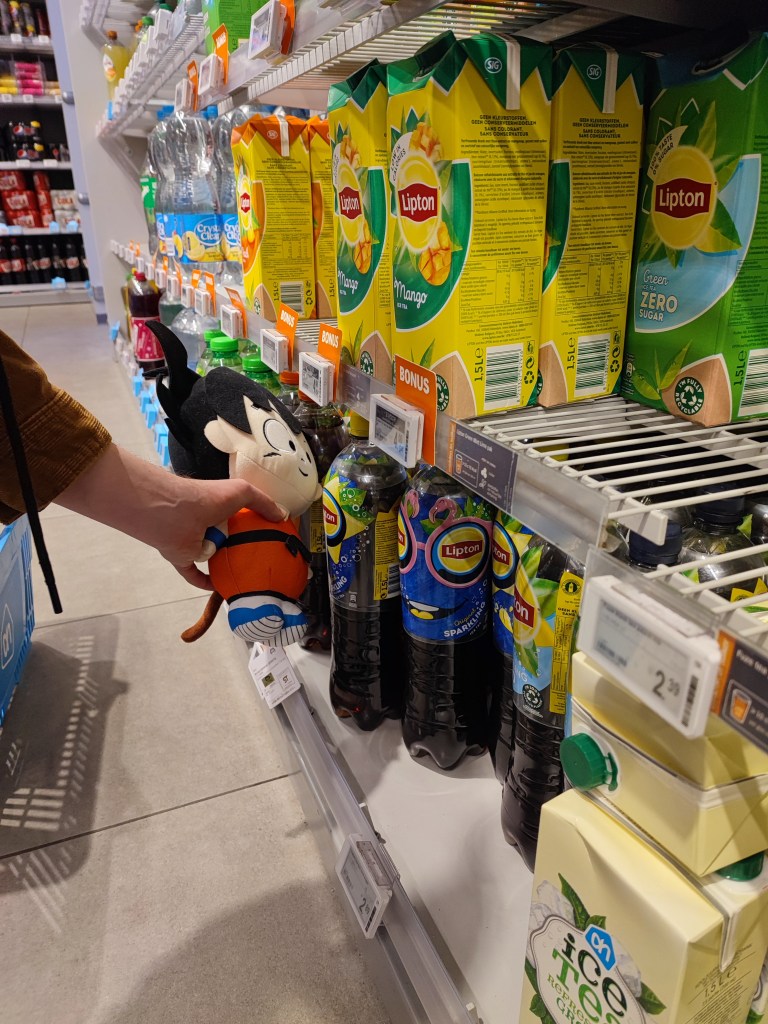 Trouwens, het leukste van de voorbereiding van koken vind ik de boodschappen, gisteren gingen we ook boodschappen doen voor de broodjes falafel! En toen wouden ik en Terrence per se een fles ijsthee meenemen met het boodschappen doen! Maar dat mocht niet van de begeleiding! Ik heb wel een mooie foto gemaakt van Terrence met zijn lievelingsdrankje!