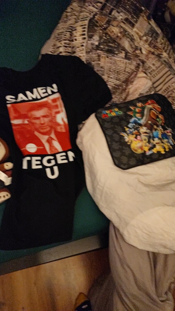 Verder heb ik van mijn neef ook nog een shirt gekregen van de Partij tegen de Burger van De Speld. Die ga ik in het nieuwe jaar als ik weer naar werk moet aan doen, een van mijn begeleiders (die ook De Speld leest en trompet speelt) zal dat denk ik heel cool vinden. En ik heb ook een Super Mario Muismat gekregen!
