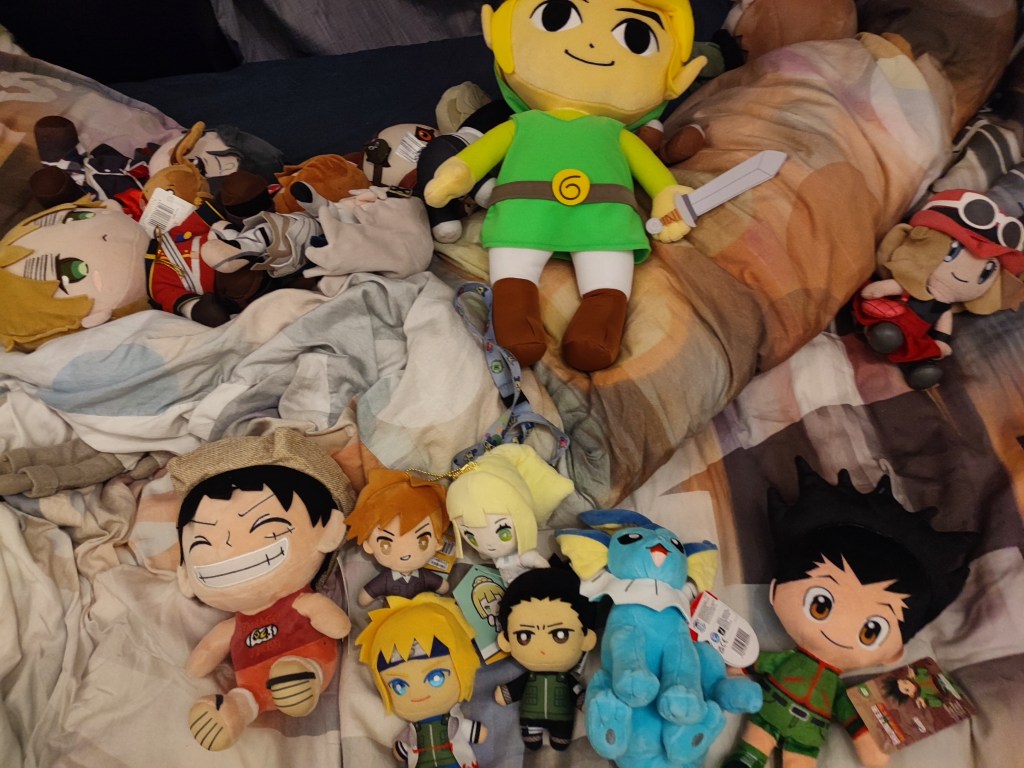 De knuffel duie je daarboven ziet liggen met het groene tuniekje is Ernesto Smits. Hij is de adoptiezoon van Donnie Smits. Daaronder op de tweede rij liggen twee kleine plushies en dat zijn John Darling en Lillie van Hees. Lillie is de tweelingzus van Aukje van Hees, die jullie natuurlijk allemaal kennen van haar wereldhit Als ik jou zie. John Darling is haar vriendje en hij komt uit Los Santos.