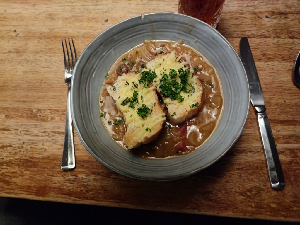 En hier is een foto van de uiensoep…….