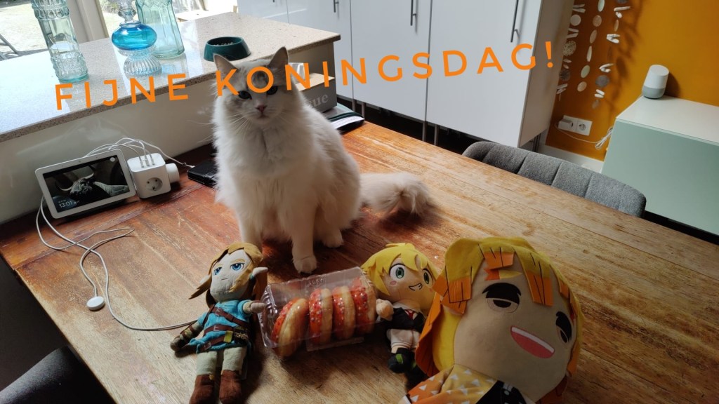 En dus vroegen ze mijn broertje om op mij te passen en die loopt nu de hele tijd te vragen wat we vanavond met eten zullen doen. Gast, het is 13.30 uur terwijl ik dit schrijf en het avondeten is nog niet aan de orde, ik heb nog niet eens geluncht. Nou ja, ik heb een Koningsdag-donut gehad waar ik een foto van heb gemaakt met Joshua erbij omdat de koninklijke familie dit jaar in Rotterdam is, en mijn knuffel Joshua komt uit………. juist, Rotterdam!
