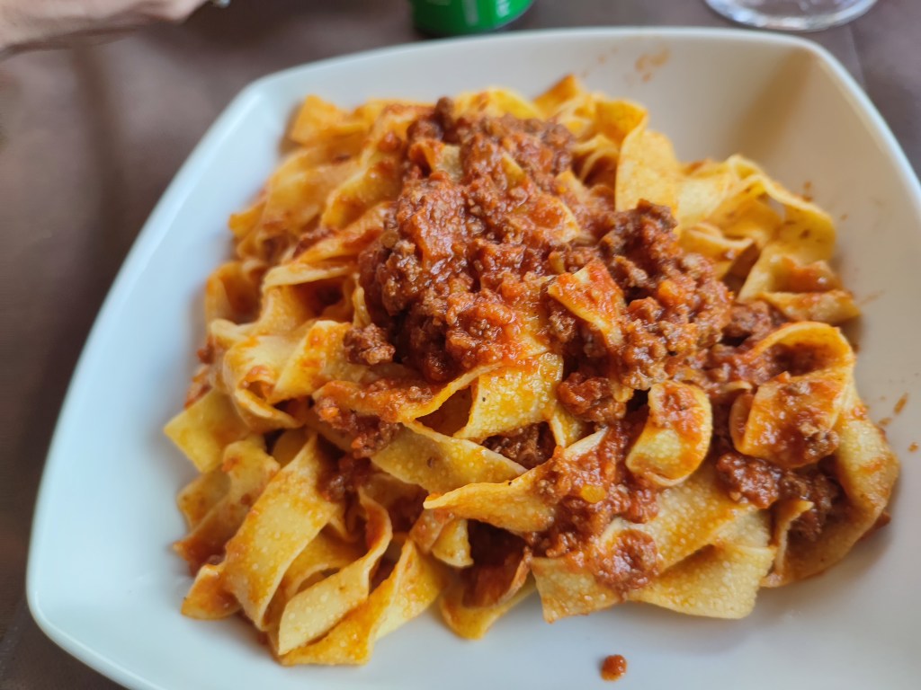 Maar ik heb vandaag ook wel weer leuke dingen gedaan, ook al was het de laatste dag, ik ben namelijk naar een stadje geweest en daar heb ik bij een rastaurantje lekker pasta Bolognese met wild zwijn gegeten als lunch! Ik ga ook een keer weer pasta bolognese maken bij TriUnity, maar niet deze vrijdag, dan ga ik al imam bayildi maken! Het was erg lekker en ook blijkbaar een erg uniek gerecht! Ook heeft papa een lekker worstje gekocht om mee te nemen naar huis!
