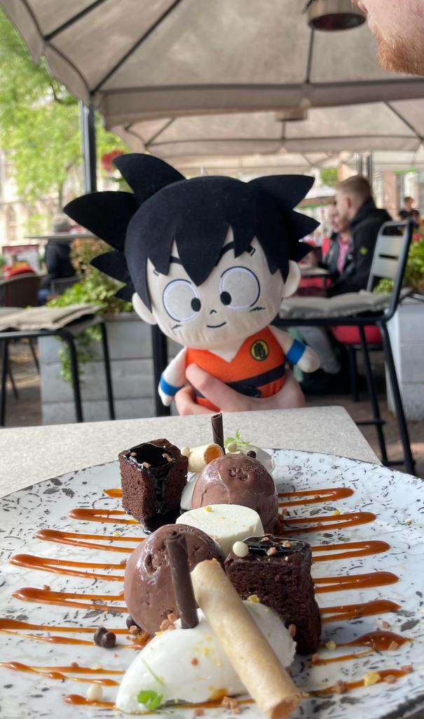Verder heb ik, als extra kers op de chocoladetaart, een chocoladedessert15:00 uur-snack gegeten! Dat was best lekker! En sowieso is Middelburg wel een leuke stad met leuke winkels en zo en willen mijn ouders er nog wel vaker naartoe om te winkelen en zo! Want er zaten veel leuke winkels in Middelburg! Helaas geen gamestore! Dat is wel jammer! Maar ik heb wel een foto van Terrence bij mijn chocoladesnack!