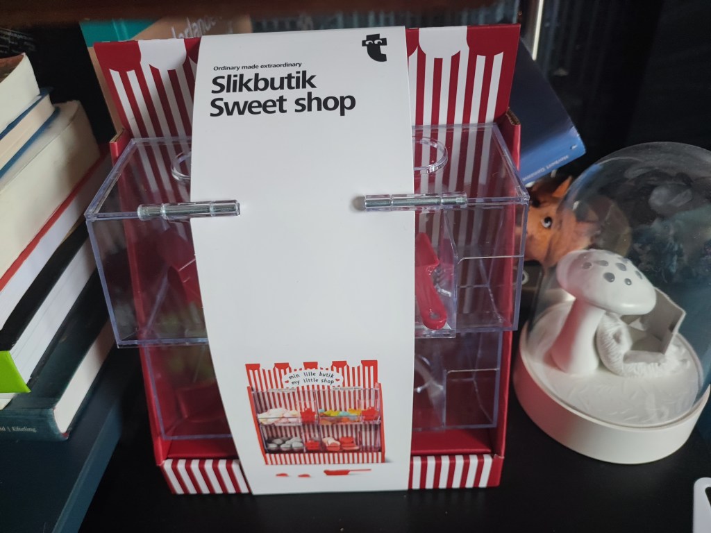 En ik heb nu ook mijn eigen snoepwinkeltje, voor mijn 20:30 uur-snacks in uit te stallen! Gekocht bij de Flying Tiger in Nijmegen! Dat is ook een van de cadeau’s!
