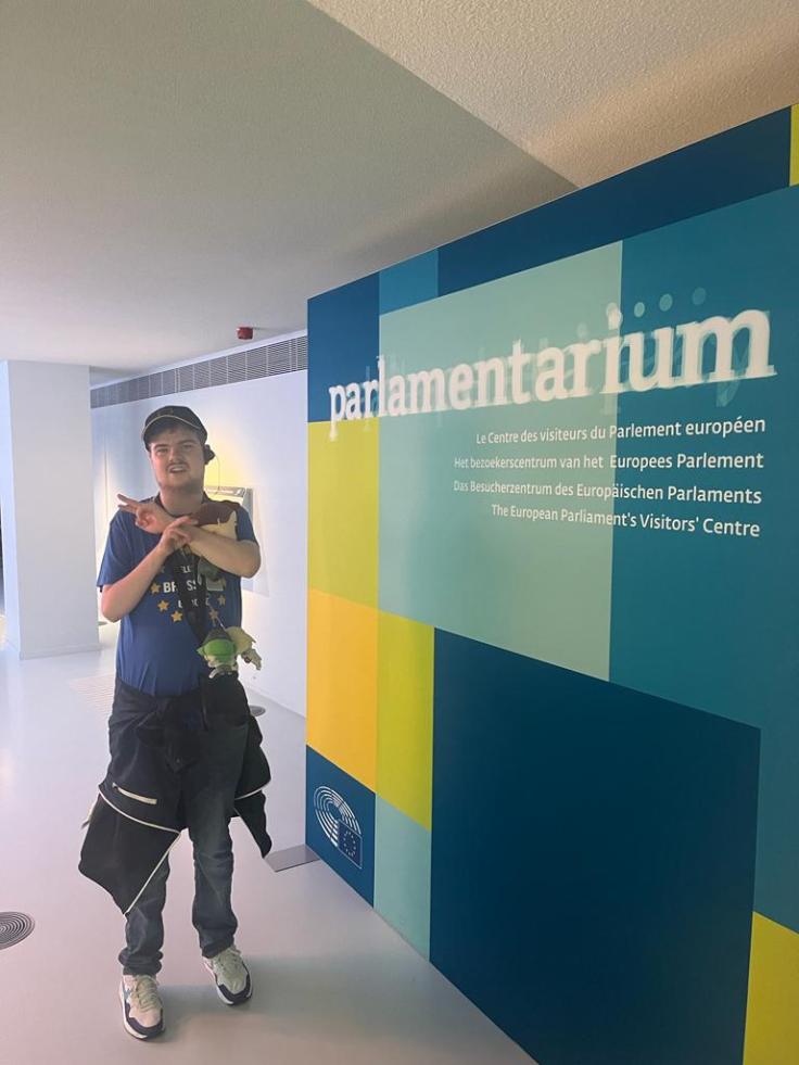 Hoe dan ook, vandaag was weer een leuke dag waarop ik veel heb gedaan! Zo ben ik naar het Parlementaruim geweest, een museum over de EU! (Zeker een aanrader als je een keer in Brussel bent en zeker ook voor mijn broertje, die ook pro-EU is!) Het deed me een beetje denken aan de Canon van Nederland, alleen wel stukken onovezichtelijker! Maar goed…… Interessant was het wel! En ik heb er veel van opgestoken en ook nog even mijn begeleider een cadeautje gedaan (EU-sokken)! Hoe vinden jullie mijn shirt en petje trouwens? En serieus, nu weet ik waar al mijn EU-belasting heengaat…… Naar de productie van merchandise! Dat kan ik alleen maar toejuichen!