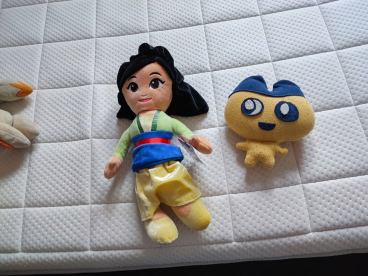 Maar dat is nog niet alles, want zie je die andere knuffel op de foto? Dat is een (voor mij, en misschien ook voor sommigen van jullie) oude bekende, namelijk Andreas, de Grote Mametchi, al mag je ook gewoon Mametchi zeggen! Toen mijn moeder het bed aan het opmaken was (wat nog steeds niet afgemaakt is, ik wil een schoon bed goddangit!) en ze wegging voor een borstonderzoek en wat andere dingen, heb ik in de lades gekeken. Kijkend of die Mametchi-pluche die mijn ouders een keer voor mij hadden gemaakt te vinden was, en die pluche is…. juist ja, Andreas!