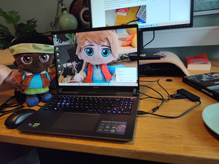 En natuurlijk is Elio er ook bij! Het is altijd leuk om je pluchen vrienden mee te nemen naar je werk, al mis ik Terrence (mijn Marty McFly-pluche) wel een beetje aangezien ik net een game heb gemaakt als eerbetoon aan hem in Unity met zijn favoriete muziek! (Gioldband!)
