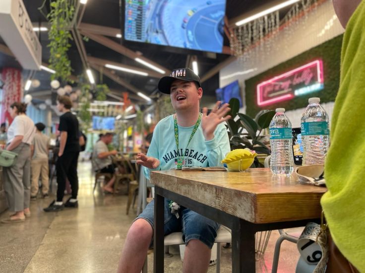 En daarna zijn we dus wezen winkelen (en heb ik een Miami pet gekocht) en tijdens het winkelen zag ik ook een pet met iets van een haai erop die ik eigenlijk voor een vriend mee wilde nemen, maar ik wist niet of die vriend wel eens petten droeg en wilde dat aan hem vragen! Maar door tijdsverschil en dat hij dus nu waarschijnlijk op een oor ligt, heb ik daar maar van af gezien, ik vraag het hem morgen (als het bij mij morgen is) wel! In eerste instantie wilde ik voor die vriend een thermometer (in Fahrenheit), meetlint (in feet en inches) of weegschaal (in lbs) kopen, aangezien hij echt een grafhekel heeft aan het Imperial-systeem en wij daar altijd grapjes over maakten dat Cyril Hearsay dat in zou voeren als hij leider van Nederland zou worden! En daarna ben ik gaan eten bij een groot complex met eettentjes wat een beetje op de Markthal leek! En daar heb ik een tonkatsu gegeten die eigenlijk best lekker was! (En pa had er al op gehint dat we daar de komende dagen dat ik hier nog ben nog een keer teruggaan!)