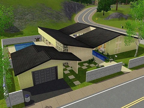 This modern home matches but is slightly larger than Minihaus, the home of the Wainwright Family. It features three large bedrooms, conveniently located bathrooms, a large kitchen and dining room, very large living room, its atrium, and its private pool area perfect for neighborhood BBQs.