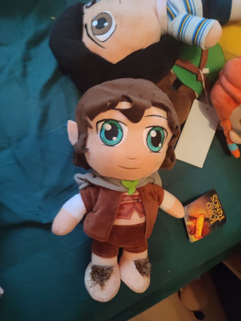 Over plushies gesproken; ik heb sinds gisterenavond ook weer een nieuwe! Het is die Frodo-plushie die je links ziet en ik heb besloten hem Donnie Smits te noemen; wat in De Sims ook zijn naam is! Donnie is een karakter wat ik jong had bedacht en die een avonturier is; dat is hij nog steeds, maar Donnie is sinds ik hem heb herontdekt ook een cabaretier geworden die uit Wijchen komt en is gebaseerd op 2 bekende cabaretiers; namelijk Pieter Derks en Arjen Lubach (en een beetje Najib Amhali)! Donnie is naast cabaretier ook een geek, maar ook een enorme pechvogel, ook heeft hij een neefje, Zion, die bij hem woont en heeft hij een knipperlichtrelatie met een vrouw genaamd Cora Vrijevogel! Ja, dit is allemaal geïnspireerd op Donald Duck! Maar anders dan Donald Duck is Donnie Smits wel een succesvolle gozer! Verder is Donnie ook nog een geek die houdt van anime, computergames, fantasy, sci-fi en andere dat soort geek-onderwerpen! En trouwens; mede Donnie heeft ervoor gezorgd dat ik geen haat meer heb tegen Wijchenaren! Helaas heeft dat bij Cyril Hearsay niet geholpen!