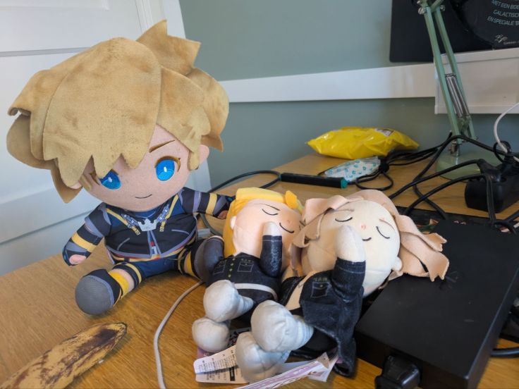 Maar goed; jullie willen waarschijnlijk iets weten over mijn knuffels; Nou, die grote is Lucas Hearsay (de zoon van Cyril Hearsay en Leslie Holland en mijn alterego), en die andere twee zijn Akira en Hikaru! Akira en Hikaru zijn niet alleen de beste vrienden van Lucas, maar ook zijn lijfwachten die hem proberen te beschermen, ten minste, daarvoor worden ze door Cyril betaald! Want ja, Lucas heeft, omdat hij Center City zo vaak redt van allerlei dingen, best wel wat vijanden! Zo is er Eline, Lucas’ ex-vriendin die erop uit is Lucas te vernietigen en Center City te veranderen in een communistische stad, en je hebt natuurlijk Nefario, en zo heb je nog wel tig vijanden van Lucas! Maar goed…. Lucas heeft ook veel vrienden, waaronder zijn beste vriend Terrence, ofwel mijn knuffel van Shinichi Kudo uit Detective Conan! En over knuffels gesproken……