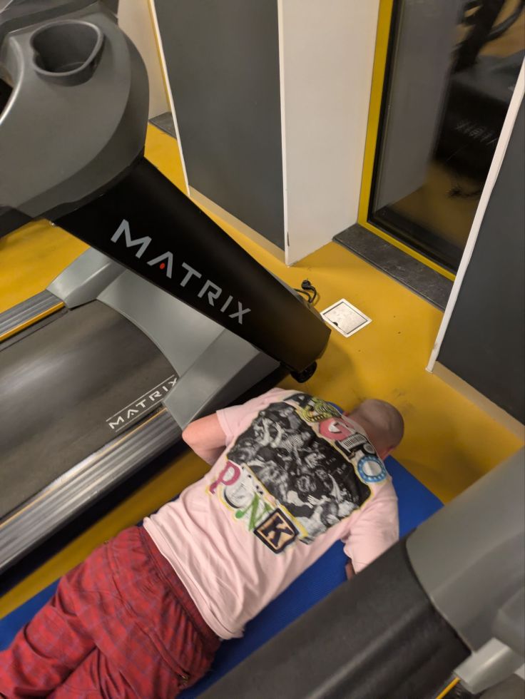 Maar zoals ik net al zei was ik gisteren wezen sporten en een van de loopbanden lag eruit, dus ging mijn sportmaatje op een matje allerlei oefeningen doen, waaronder “planking” (nooit van gehoord!) en daar moest ik gewoon even een foto van nemen! Verder was het sporten wel leuk hoor! We hebben weer veel interessante discussies gehad en we hebben zelfs een paar vragen aan Chatbots gesteld! Over dingen als China en Japan en zo, en na het sporten heb ik lekker de film Mulan gekeken op Disney+, nadat ik eerder die dag al Pocahontas gekeken had, en daarbij mijn vader per ongeluk stoorde in zijn werk! (Daarvoor nog excuses!) Maar goed… de foto van mijn sportmaatje, en ja, dit mocht van hem!