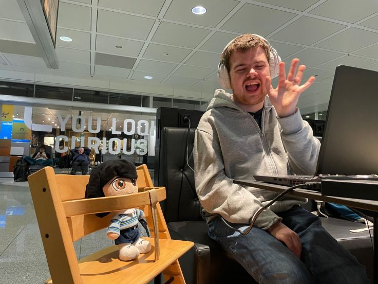 Verder heeft mijn vader ook nog een foto van mij en mijn knuffel gemaakt net terwijl we hier op het vliegveld zaten!