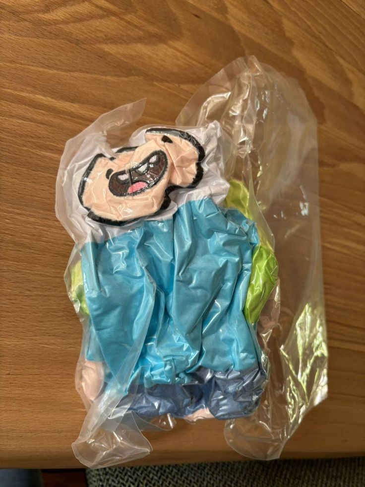 de “plushie race” die ik deze maand heb uitgeroepen vanwege mijn gaming rig, blijft onverwacht spannend! Gisteren kreeg ik al bericht dat mijn Spy x Family DZNR Plush Figure Loid Forger Operation Strix Edition 18 cm die ik besteld heb bij De Toyboys verzonden is (en die dus morgen komt) en later gisteren kreeg ik bericht dat mijn pluche van Finn uit Adventure Time vandaag aan zou komen; en hij kwam er ook aan; en bij DHL zeiden de dat ze m in de brievenbus gingen doen; dus mijn moeder zich afvragen hoe ze dat zouden kunnen doen! En toen de knuffel aankwam; hadden we het antwoord! De pluche van Finn was dus helemaal vacuüm gezogen! En als je wil weten hoe dat eruit ziet; een vacuüm gezogen plushie, bekijk dan vooral even de foto hieronder!