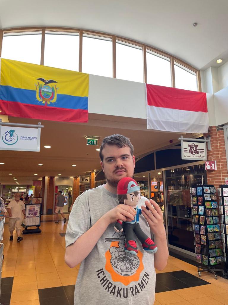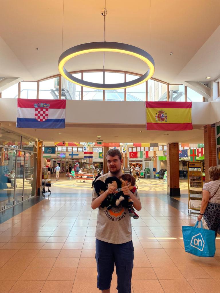 Een grote vlaggenparade! Waardoor mijn excitement met nog eens een factor 100 toenam! En daarom, beste lezers, ben ik in het winkelcentrum vandaag weer wezen bezoeken om een foto te maken met mijn Ash Ketchum-plushie, want hé, Ash is een wereldreiziger en als iets “wereld” uitstraalt zijn het wel vlaggen van landen! (Tuurlijk weet ik dat het vanwege de Vierdaagse was maar laat me gewoon even doen alsof ik ineens in de Babel Mall beland was!) Het was gewoon nog vetter dan een willekeurig wereldmonument, zoals het Rijksmuseum, de Dam, de Kinderdijk Windmills, de Kubuswoningen, de Markthal, de Euromast, de Eiffeltoren, het Louvre, de East Side Gallery, het Pantheon, het Parthenon, het Collosseum, de Sint Pietersbasiliek, het Forum Romanum, de Brandenburger Tor, de Big Ben, de Greenwich Meridian, Buckingham Palace, of wel een reclamebord; maar dan die op Piccadilly Circus of Times Square! Of de Chinese Muur, Piramides van Gizeh, de Berlijnse Muur (de stukken die er nog staan iig), het Atomium of het Europarlement (ja, in Bouwput City/Brussel), het Vredespaleis of het Binnenhof in Den Haag of Huis ten Bosch of de Burj Khalifa of zo! Ik bedoel, dit waren fokking vlaggen! En ja, het was de afspraak dat ik met Ash niet bij een bushalte op de foto zou gaan, maar dit straalde ook “wereld” uit; al blijft het nog wel een doel om in Londen in oktober met Ash op de foto te gaan bij de Big Ben of Buckingham Palace of Piccadilly Circus!