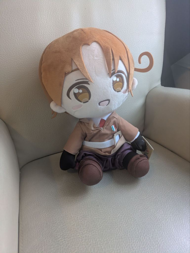 Maar goed; ik had nog meer vrienden op de basisschool die ik nu niet meer zie; zoals een jongen, die heel erg van Nederlandse muziek hield, en die me ook Wereldbol heeft laten horen (waarvan ik op mijn 10de niet had kunnen bedenken dat het later een trollnummer zou worden om mensen mee in de maling te nemen met linkjes naar: “Dit is geen Wereldbol” (en dan is het stiekem TOCH Wereldbol) en een meisje dat verhalen schreef over Lana de Wit die vanalles beleefde (en die in mijn verhalen nu samen is met Joshua, danwel met John Swan) en hoe kunnen we natuurlijk mijn geekvriend vergeten, die RPG’s kon programmeren (iets wat ik nu ook leer) en met mij in de Secret Society of Hetalia zat! (Oké, dit was middelbare school, maar toch, goede herinneringen, niet mijn hele middelbare schooltijd was kut!) Maar goed; even over die Secret Society of Hetalia: Mijn ex-vriendin wilde wss dat er (net als op elke high school serie op tv) een “secret society” zou zijn op onze school! De enige secret society op onze school was de Secret Society of Hetalia maar dat waren gewoon een paar gasten in mooie pakjes/uniformpjes en nep-legerhelmpjes (soms, als de Polandball-liefhebbers het computerlokaal waar wij bij elkaar kwamen weer eens wilden bestormen om onze Hetalia-fanfics te veranderen door Polandball-comics, die sukkels!) , die van APH hielden! Geen rituelen of zo, ja, de menselijke namen van de landen kennen en zweren dat je nooit iets met Polandball zou gaan doen (dat was de rivaliserende groep)! Ik was ook lid, net als de andere weeb uit mijn klas, natuurlijk Groenlokje! Ik heb, omdat ik zo trouw was aan die groep (The Secret Society of Hetalia), mokertjelang gezocht naar een Hetaliafiguur van pluche (op de middelbare school had ik nog geen iDEAL, alleen een Maestro-pas die trouwens RIP is sinds het “wasmachine-incident” van maart 2025, wat ik eerder beschreef), maar ja, om mijn ouders (die iDEAL en creditcards hadden) nou het concept Hetalia uit te gaan leggen (menselijke landen) en ze het WWW op te sturen om daar pluches van te vinden en te bestellen leek me ook weer not done; uiteindelijk in 2020 (toen ik al lang van school was afgestudeerd en de society defacto ontbonden) een pluche van het karakter America (Alfred F. Jones als ik het goed heb) besteld op bol.com, en later kwamen Japan (Kiku Honda) en England (Arthur Kirkland) er ook nog bij in 2022! En sinds een paar weken hoort deze pluche ook bij de verzameling! TAITO Hetalia World Stars Italy Big Plush Doll JAPAN OFFICIAL besteld vandaag! Om de society te eren! Groenlokje zou trots zijn! Tegenwoordig is het mokermakkelijk om een Hetalia plushie te kopen voor mij; zoeken, klikken, debitcardgegevens invullen (sinds het “wasmachine-incident” wat ik eerder noemde heb ik een Debit Mastercard), hopen dat mijn saldo toereikend is, en daarna kopen en wachten op het pakketje! De society zou dit wss met pizza vieren! En de eerdere pluches met hamburgers, fish & chips en supermarktsushi! (Geen idee hoe we een airfryer het pc-lokaal ingesmokkeld kregen, ach ja, zou wss gewoon bij iemand thuis zijn geweest!) En dan zaten we daar om 16:30 uur nog in dat computerlokaal, terwijl de rest van de school als half verlaten was, tot iemand zei dat we maar eens naar huis moesten gaan! En een iemand nam dan altijd nét de deur waarop stond dat die na 16:30 uur niet meer open mocht, anders zou het alarm afgaan! Maar omdat ik zo trouw was aan die Secret Society heb ik heel lang gezocht naar pluche figuren van Hetalia, en nu heb ik er 4; namelijk America, England, Japan en Italy (Ja, Hetalia, dat zijn animepersonages die mensen zijn, maar die ook een land representeren! Snap je dat ik dit niet aan mijn ouders kon uitleggen zonder raar te klinken in hun “normie-oren”?) Maar goed; omdat jullie het zo graag willen; hier een galerij met mijn 4 Hetalia-pluches!