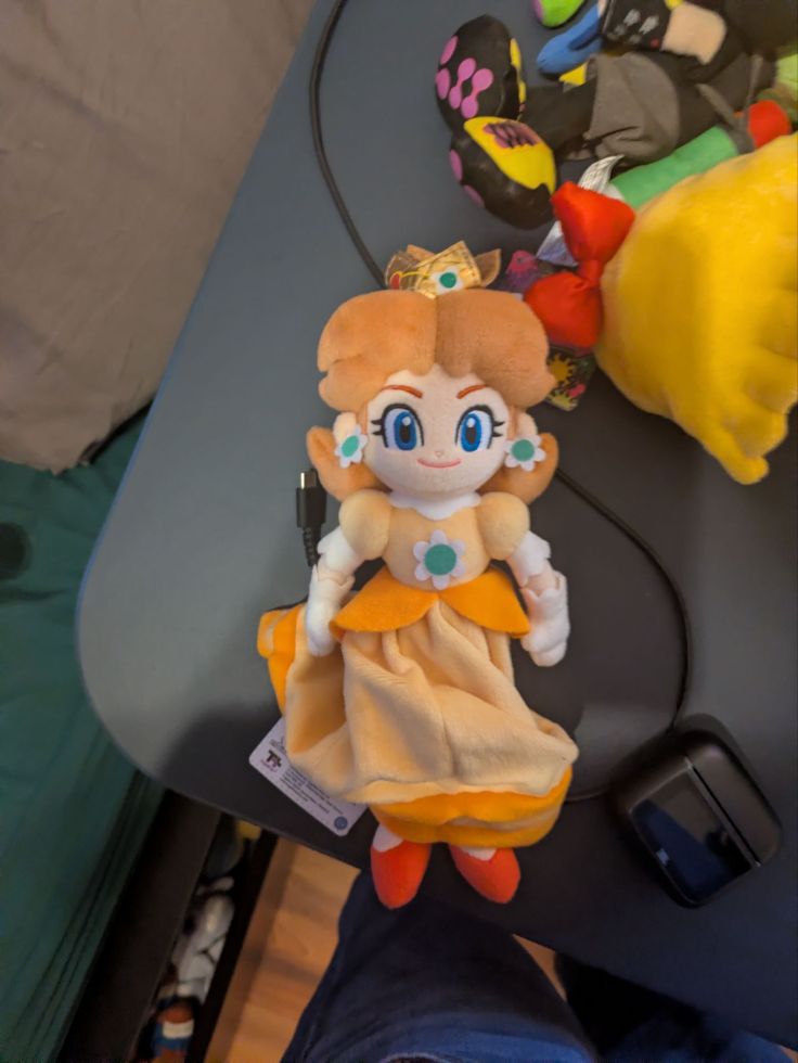 En verder….. Waar wilde ik het vandaag nog meer over hebben; oh ja! Gisteren is ook mijn pluche van Daisy van Super Mario die ik op MAR10 Day had besteld binnengekomen! En tsja, dat had ik best wel even aan mijn ouders mogen melden! Sorry daarvoor nog, ouders! Echt vanuit de grond van mijn hart 1000 maal sorry dat ik dat zonder toestemming gedaan heb! Maar goed; nu heb ik beslist dat de volgende pluche die ik ga bestellen, pas midden tot eind april is, rond Koningsdag (Ekko van LoL)! Maar goed….. Ik heb nu wel een pluche van Daisy, nu is het Mario-prinsestrio in mijn pluchecollectie eindelijk compleet! Maar nu weet ik dus niet hoe ik haar ga noemen, ik zat aan Aukje te denken, want Peach heet al Laura en Rosalina heet al Riley! Wat vinden jullie?