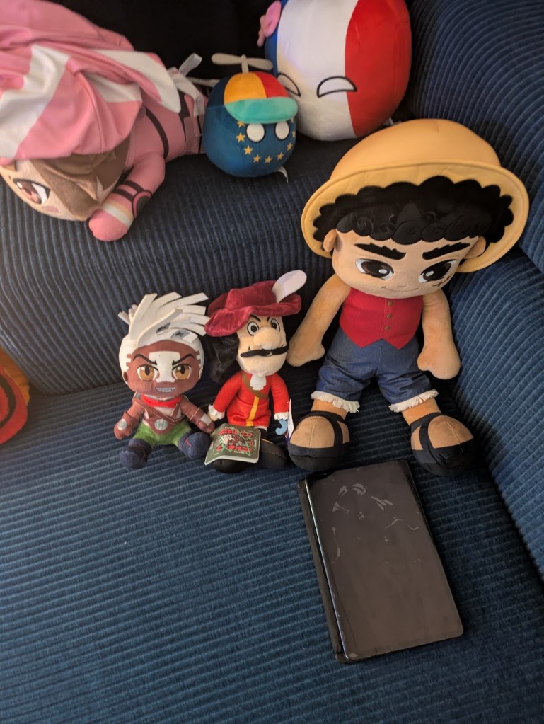 Dan nu even wat anders; want gisteren kwamen mijn ouders weer even langs om met mij mijn bankzaken te regelen , rond mijn nieuwe rekening en zo, en om mijn kamer de laatste puntjes op de i te zetten; zoals ik gisteren schreef! En ze hadden ook weer twee pluches bij waarvan ik er een (Manjiro Sano) de facto vanmidsdag pas krijg van Mr. Maestro! Maar de andere, Kapitein Haak van Peter Pan; nou, die mocht ik gelijk al hebben, want dat was een cadeau van pa! En nu heb ik ook gewoon de pluches die ik het meest graag wilde hebben van de “op mezelf wonen pluche haul” al in huis! Nou ja…. Behalve Absol, maar verder wel Sephiroth (ofwel John), Ekko (ofwel Donnie), Kapitein Haak en vanmiddag dus Manjiro (ofwel Paul)! Ben benieuwd wie de rest van de plushies allemaal komen brengen! Maar goed; de reden dat ik vanmiddag met Mr. Maestro boodschappen ga doen is naast het op mezelf wonen nog wat anders; namelijk; het Feel Fit Center is dicht vandaag! Of nou ja, ze waren vandaag wel open, maar Mr. Maestro komt pas over een uur; en dan zijn ze dicht! Dus daarom heb ik Mr. Maestro net geappt of hij met mij boodschappen wil doen! Want ja; ik wil natuurlijk toch wat lekkers nu ik op mezelf woon; en gisteren stroomden de felicitaties van mensen binnen; mijn neef zeri onder andere “Welkom bij dse club van mensen die op zichzelf wonen!” en toen voelde ik me wel vereerd! Want ja; ik woon nu eenmaal op mezelf; en de begeleiding is hier best chill, want toen ze me net vroegen of ik zou komen lunchen, zei ik dat ik dat eigenlijk niet doe in het weekend en dat ik dan laat ontbijt, tenzij ik naar de stad ga of op een ander uitje! En daar waren ze totaal chill mee! En dat vind ik best wel fijn! Want ja, toen was ik net aan het bloggen, en als ik dat moest ondserbreken om te lunchen dan zou het bloggen weer eeuwen gaan duren, net als eergisteren! Maar goed; wat ik wel heb gedaan is mijn nieuwe debitcard gekoppeld aan allerlei dingen die ik gebruik zodat ik die kan gebruiken op internet! Maar straks ga ik m eerst gebruiken om boodschappen mee te doen bij de Albert Heijn, pa heeft me de route al doorgestuurd en ik heb hierboven al gedeeld wat ik ga kopen, een soort boodschappenlijstje, zodat ik het niet vergeet wat ik ga kopen!