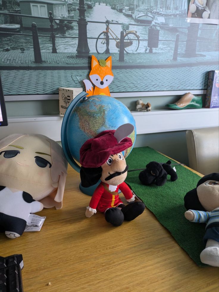 Maar goed; gisteren was dus best leuk, en vandaag was vooral even wennen dat ik nu op mezelf woon en dat mijn moeder me kwam ophalen, maar op de riem na, ging het allemaal redelijk tot zeer goed! En nu zit ik lekker op mijn werk; lekker te chillen! En veel mensen vinden mijn pluche van Kapitein Haak ook leuk, dat is ook gewoon een van de weinige pluches die mensen kennen (waarom eigenlijk?)! Buiten Peter Pan zelf natuurlijk, Mulan, Finn van Adventure Time (voor mijn generatie althans, de meeste anderen kennen alleen Jake), Eevee (ook steeds meer) en Ash Ketchum uit Pokémon!