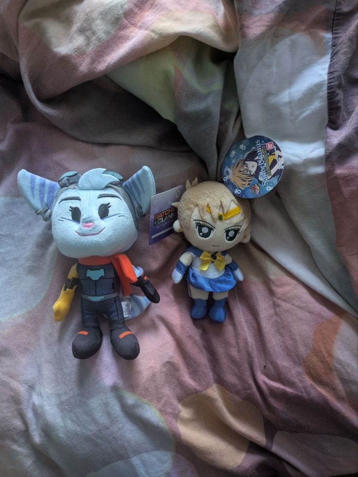 En dan hebben we nog twee pluches die ik gisteren fysiek gekregen hab van mensen op mijn verjaardag, namelijk Rivet uit Ratchet & Clank (van Mr. Maestro, die haar Ratchet noemt terwijl het defacto Rivet is!) en Sailor Uranus uit Sailor Moon van mijn buurvrouw! Hieronder zet ik ze samen op de foto!