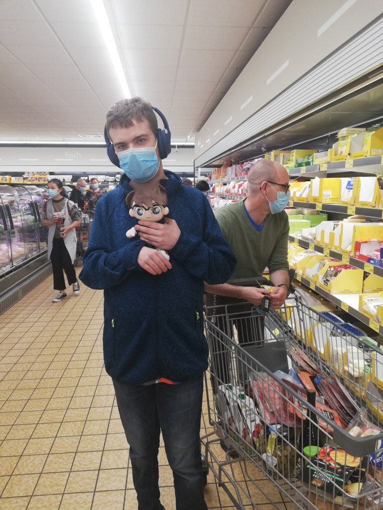 Daarna zijn we naar de Aldi in Kranenburg gegaan om boodschappen te doen en heb ik een foto gemaakt met mijn nieuwe knuffel: