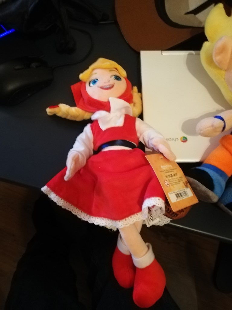 Ik heb ook nog een nieuwe pluche gekocht, het is een pluche van Roodkapje maar ik heb haar May genoemd omdat mijn oom een keer zei in de Familie-app dat het karakter May Hearsay op Roodkapje leek! Bedankt Mike voor dat idee!