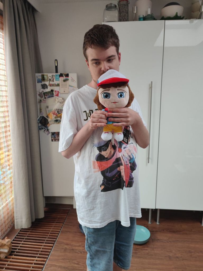 En ik heb natuurlijk ook een nieuwe knuffel; namelijk Joshua van Malden! En daarover ga ik jullie nu meer vertellen! Hij is mijn beste denkbeeldige vriend en ik beleefde vroeger heel veel avonturen met hem! In mijn jeugd, tot ik op een dag gek werd van Tamagotchi’s (en met gek bedoel ik hier niet dat ik er tureluurs van werd, maar dat ik er dol op werd) en toen ben ik hem tijdelijk even vergeten tot in 2016, toen ik hem weer verzon om me te helpen na een vervelende breakup (met de info over die breakup ga ik jullie nu niet lastig vallen, velen kennen die verhalen al!)